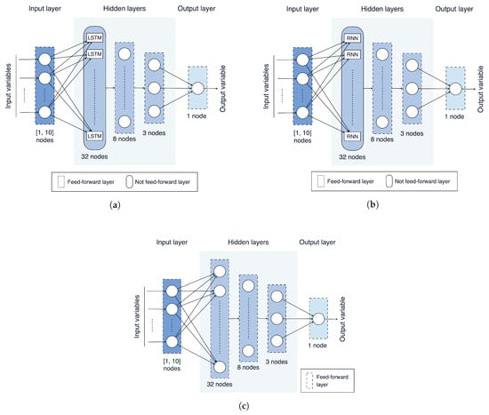 - Three NN architectures, based on an ANN, a RNN, and a LSTM, are introduced and trained with the data sets resulting from the previous steps (Section 4.5).