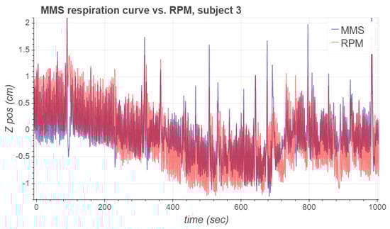MMS and RPM respiration signals for subject 3.