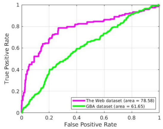 ROC of the proposal for GBA and The Web datasets.