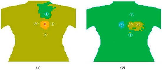 Similar results were obtained for the chest in Figure 10a,b. The results obtained will be used to calculate and visualize a 3D model of the thermal field in the chest and skull area similar to those shown in Figure 8. The internal temperature displaying the intermediate plane, whose position is specified by using the wheel of a computer mouse wheel, will more accurately determine the position of a malignant tumor, given the depth of the location. In addition, you can quickly view the results of a long test in the “cartoon” mode to analyze the dynamic thermal processes inside the human body.