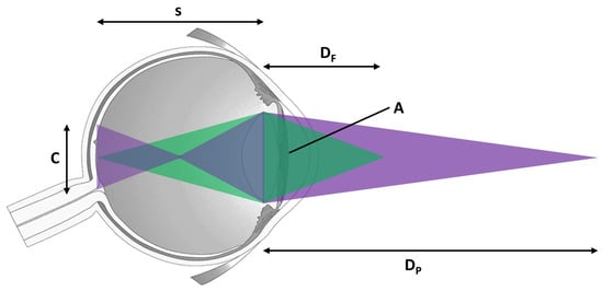 where s is the distance between the retina and lens, more commonly known as the posterior nodal distance, and A is the aperture of the eye.
