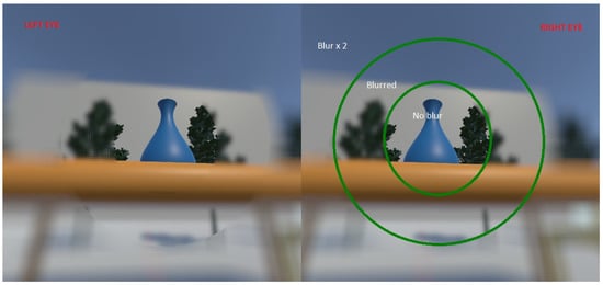 Even though we had a relatively small number of participants, our data indicate that incorporating our blur technique in virtual reality systems can have a soothing effect, potentially decreasing the simulator sickness. As a future work, we will further investigate the resourcefulness of the developed system for mitigating the vergence–accommodation conflict in virtual reality systems. We will also test our system with other virtual reality applications and possibly extend it to augmented reality devices.