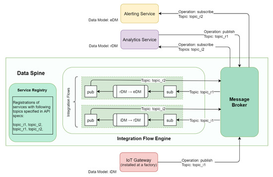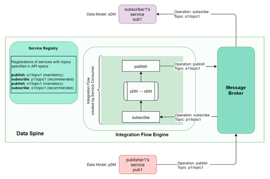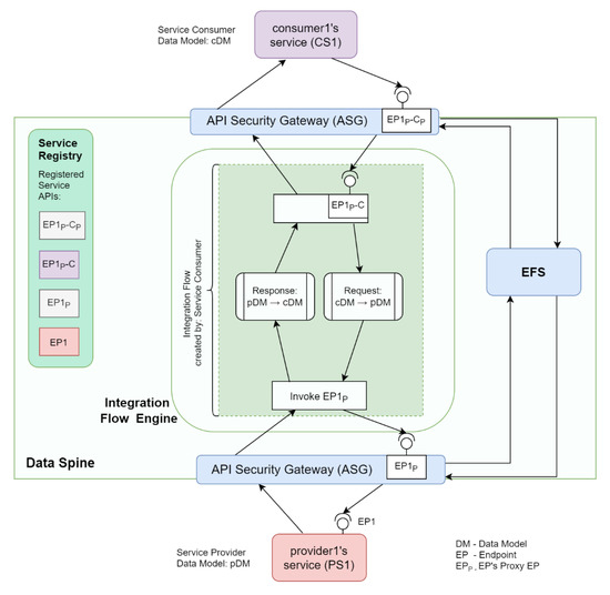 - API management: The system integrator users need to refer to the API specifications of services to create integration flows. The Data Spine provides a service registry component to store and retrieve service metadata including the API specifications. To ensure uniformity across and completeness of the API specifications, the EFPF ecosystem recommends the use of OpenAPI Specification [34] standard for specifying the APIs of services that follow synchronous (request-response) communication pattern and AsyncAPI specification [35] standard for specifying APIs of services that follow asynchronous (Pub/Sub) communication pattern. Thus, this implies that the service providers need to register their services to the service registry and follow the proposed standards to specify the APIs of their services.