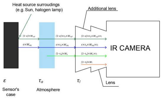 All components of the IR radiation reaching the camera lens are presented in Figure 4.