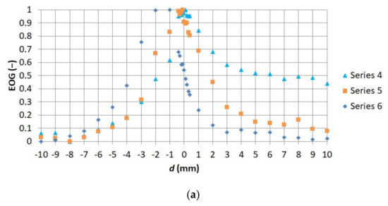 Consequently, it was possible to select such a measure of sharpness which corresponded best to observer indications. It was noticed that the highest values of coefficients of correlation between the observers’ indications and the values of the measures of sharpness were obtained by means of EOG and EOL. EOG was selected for further works, with the level of difficulty of using individual measures of sharpness being considered. Figure 8 and Figure 9 present a comparison of the standardized EOG values for each of the series of thermograms with observer indications. The number of thermograms indicated by observers as sharp is marked as n.