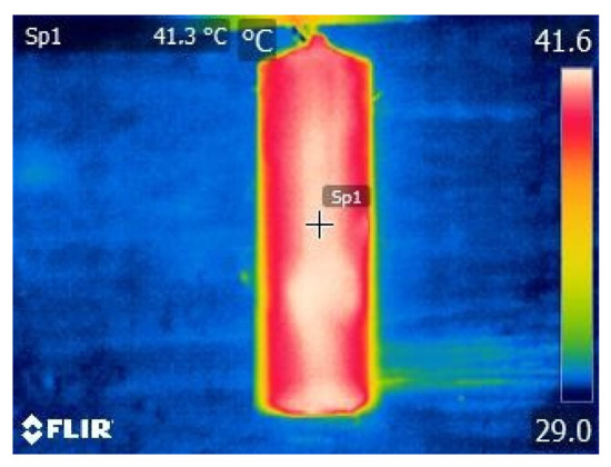 The additional lens was installed on the thermographic camera. Therefore, the assumption of ϑl = ϑa was made. Consequently, the values of ϑl were considered within a range from 18 °C to 35 °C. The last value range was determined for Wtot. This value was determined by means of (14). Values of the variables in Equation (14) were changed within pre-determined ranges. In consequence, the highest value Wtot = 0.1669 and the lowest value Wtot = 0.1439 were determined. Coefficient c which is the constituent derivative of Equation (14) is presented in Equations (24)–(30).