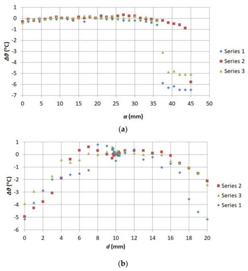 Based on the measured values of ϑS and ϑt for every thermogram, the absolute error value of the thermographic temperature Δϑ was calculated according to Formula (23).