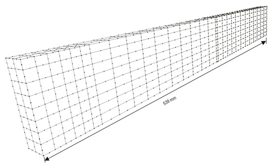 Particularly in the case of the present bending test, the boundary-element (BE) model depicted in Figure 12 has been employed for solving the beam. The mesh shown in Figure 12 contains 618 8-node quadratic boundary elements, having a total of 1838 nodes and 5514 degrees of freedom (DOF). To discuss the performance of the strategy proposed in this paper, two analyses were carried out.