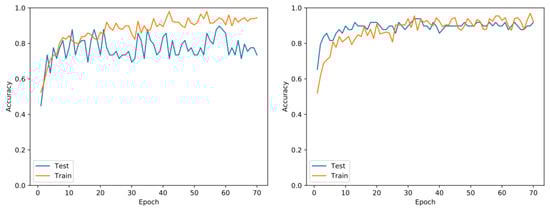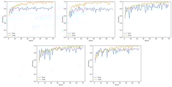 Similarly, we tested the same idea using SqueezeNet [38], a lightweight convolutional neural network. Figure 6 shows the learning curves for all five folds. The behavior of the curves was very similar to the DenseNet CNN, which implies that the lightweight network is suitable for this case.