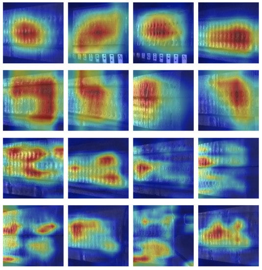 - Selvaraju, R.R.; Cogswell, M.; Abhishek Das, R.V.; Parikh, D.; Batra, D. Grad-CAM: Visual Explanations from Deep Networks via Gradient-Based Localization. In Proceedings of the 2017 IEEE International Conference on Computer Vision (ICCV), Venice, Italy, 22–29 October 2017; pp. 618–626. [Google Scholar] [CrossRef]