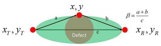 A tomographic image is illustrated by distributing each signal difference value in an elliptical shape. A shape coefficient β is defined to adjust the size of the ellipse, which depends on the beam pattern and defect size. Note that the shape parameter β is considered to be the shape coefficient that controls the size of the elliptical distribution: