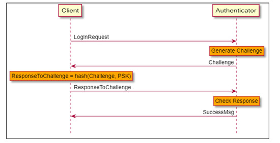 Both sides calculate the response, which is the cryptographic hash of the challenge concatenated with the PSK. The client sends its response, and the server compares it to its calculation. If they match, the authentication is successful. Several well-known authentication protocols are based on this model, e.g., CHAP [39], EAP [40], and HOTP [41].