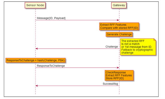If the ResponseToChallenge is successfully verified by the GW, the RFF features are extracted and the RFF is stored for this specific ID (RFF{ID} in the Figure 4). This scenario is a valid one even if not in the case of a malicious attack. It can happen even for static sensors for example if the environment changes. This demonstrates the self-recovery property of the protocol.