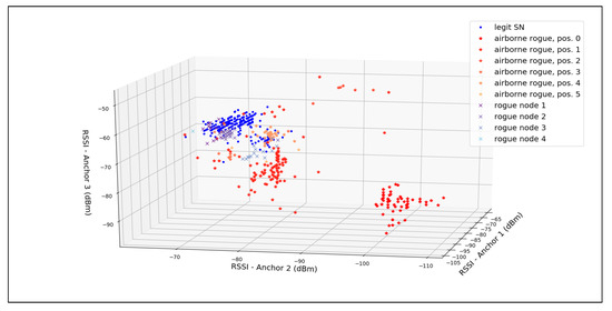 We present here an original evaluation system fully working in real-time, inspired by previous works from different domains: using RSSI measurements to evaluate the location of a transmitter is a common technique based on radio triangulation, for indoor location tracking or for geolocation in GPS-degraded environments [47]; leveraging RSSI-based location fingerprinting as part of authentication schemes has been proposed in the past for smartphones or in the context of WLAN [48,49]. It has also been proposed as a second factor of authentication, in the form of a proximity check [50]. By building on top of these methods to create a lightweight RFF-based authentication system, we were able to create an end-to-end evaluation system close to a real-life setup.