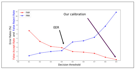 These results clearly show the value of the RFF as a primary method of authentication as part of a hybrid protocol, as defined in the first part of Section 4. In this energy consumption evaluation, we tried the hybrid system with values of the FRR configured to 10% and 5% to simulate recent RFF methods; any progress in the RFF technology allowing the use of lower FRR value without negatively affecting the FAR value will immediately drive significant energy savings for a given security level.