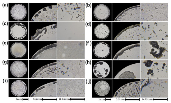 - Choi, Y.; Han, J.; Kim, C. Pattern formation in drying of particle-laden sessile drops of polymer solutions on solid substrates. Korean J. Chem. Eng. 2011, 28, 2130–2136. [Google Scholar] [CrossRef]