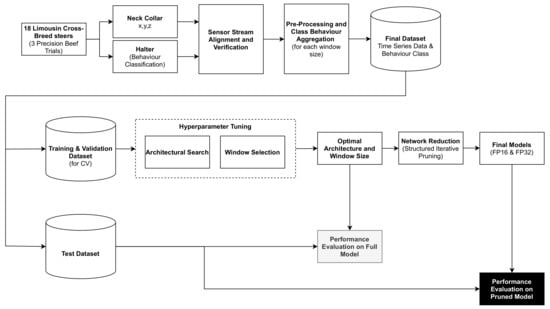 A block diagram detailing the development process, which comprised data acquisition, data pre-processing, hyper-parameter search, network reduction and performance evaluation is illustrated in Figure 1.