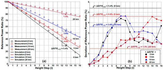 System performance of dual-path network configuration. (a) Measured/simulated reference-to-power ratios according to the sensing distance. (b) Allowable deviation ranges of the reference-to-power ratios for remote sensing.