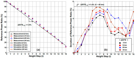 System performance of single-path network configuration. (a) Measured/simulated reference-to-power ratios according to the sensing distance. (b) Allowable deviation ranges of the reference-to-power ratios for remote sensing.