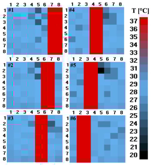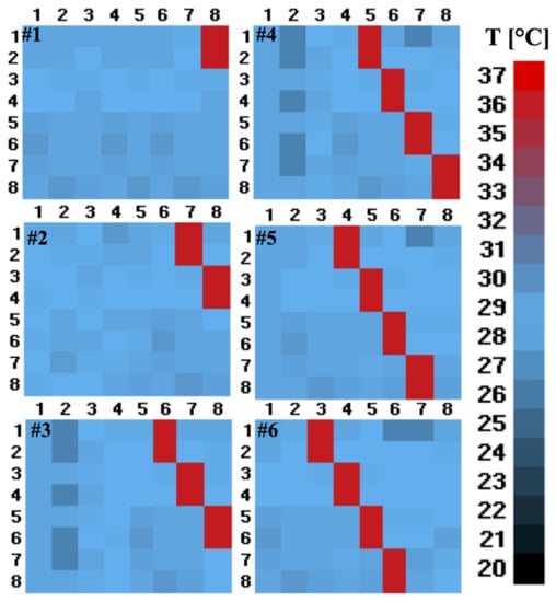 The perturbations with a temperature value of 37 °C were introduced into a part of the matrix elements (from right to left direction) of the 8 × 8 matrix, representing the ambient temperature as a base disturbance distribution. The two tests are described below.