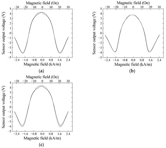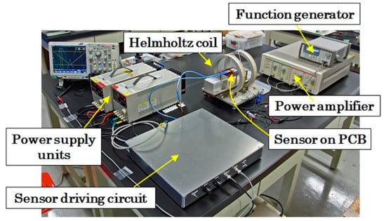 - Yabukami, S.; Suzuki, T.; Ajiro, N.; Kikuchi, H.; Yamaguchi, M.; Arai, K. A high frequency carrier-type magnetic field sensor using carrier suppressing circuit. IEEE Trans. Magn. 2001, 37, 2019–2021. [Google Scholar] [CrossRef]