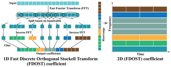 where p denotes the frequency bands determined by and . The coefficient of the FDOST can be calculated as: