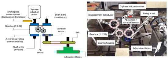 To validate the proposed model, two bearing datasets have been considered, among which, one is obtained from the public repository of Case Western Reserve University [], and the other one is collected from a self-designed test bed. The improvement in the performance of the proposed signal processing step, feature selection process, and classifier has been verified through several comparisons with state-of-the-art published studies. The further details related to the dataset description along with the experimental setup are discussed in Section 4.