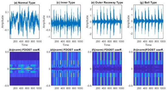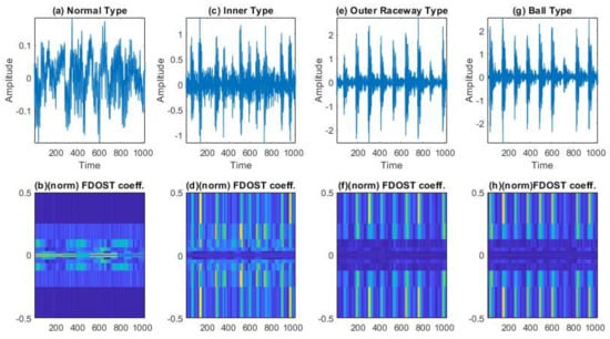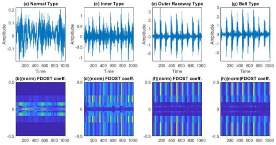 Therefore, it is inevitable to come up with a new and effective signal processing technique through which fault signature exploration can become reliable during the CM-FD of bearings [,]. Recently, in this regard, Stockwell Transform (ST) was used for the fault signature identification and localization [] for the following major advantages: