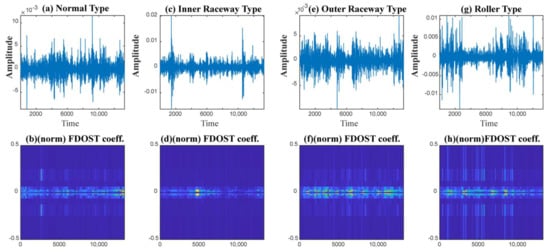 - To capture the information of variable working conditions from the vibration signals both at low and high frequencies, a computationally advanced version of ST called FDOST is proposed as the signal preprocessing step. First, statistical parameters are extracted as features from the time-frequency magnitudes and their corresponding phase angles of the FDOST coefficients. The extracted statistical features are then arranged as a feature matrix which can be regarded as input in the proceedings step. Thus, a carefully curated statistical feature pool extracted from unique FDOST patterns for different types of bearing faults is proposed in this study, which is helpful for boosting up the classification performance of the subsequent classifier.