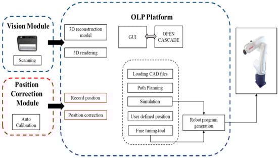 The remainder of this paper is organized as follows: in Section 2, we give an overview of the position correction system integration with robot-guided inspection architecture; in Section 3, we provide an overview of the position correction system and introduce the proposed method; in Section 4, we detail the integration of the position correction module with the OLP platform and report the system performance; in Section 5, we report the conclusions of the proposed system.