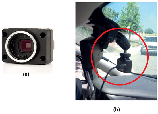 CMOS FireFly MV camera (a) and camera vehicle mounting (b).