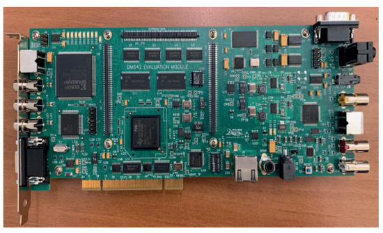 The lane-detection and trajectory-generation algorithms were implemented via the Image Processing and Computer Vision Toolbox available in Matlab/Simulink. In order to build up a prototypal setup, the Matlab/Simulink code of the video-processing algorithm was coded in the C language, suitable for the Board EVM TMS320DM642. This evaluation module (Figure 9) is a low-cost standalone development platform that enables users to evaluate and develop applications for the TI C64xx Digital Signal Processor (DSP) family [31].