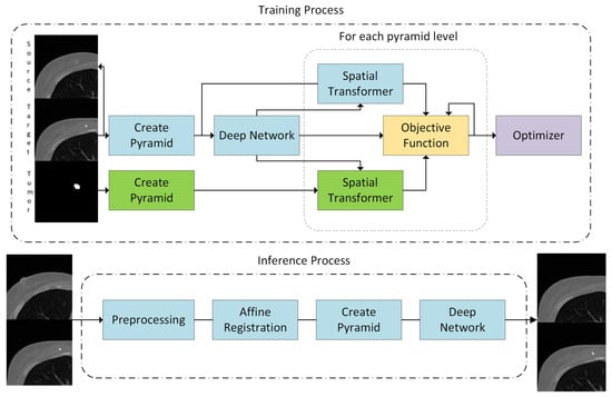 - Mok, T.; Chung, A. Large Deformation Diffeomorphic Image Registration with Laplacian Pyramid Networks. In International Conference on Medical Image Computing and Computer-Assisted Intervention; Springer: Cham, Switzerland, 2020; pp. 1–10. [Google Scholar]