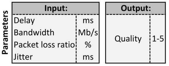 - Read input data: The input data consisted of 100 samples. One sample is constructed of delay (D), bandwidth (B), packet loss ratio (PLR), jitter (J) values and the quality (Q) label.