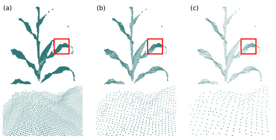 Point cloud standardization. (a) Input point cloud; (b) point cloud with resolution and (c) point cloud with resolution.