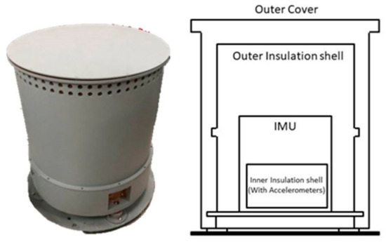 As mentioned above, the accelerometer accuracy can reach 10−5 m/s2 when its operating temperature variation is less than 0.01 °C. Thus, in order to improve the output accuracy, a multi-layer precise temperature control scheme is adopted [17]. The profile of the INS with precise temperature control system is shown in Figure 4.