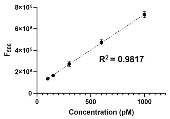 Linear relationship between the fluorescence intensity (F506) and concentration of target nucleic acids spiked in the diluted human serum (1%). All experiments were performed in triplicate.