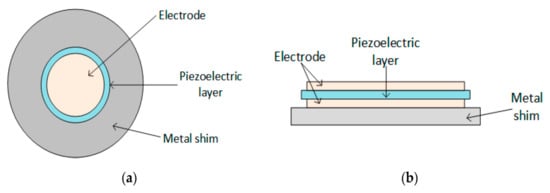 Circular diaphragm transducer: (a) Front view; (b) Side view []. Reprinted under the Creative Commons (CC) License (CC BY 4.0).