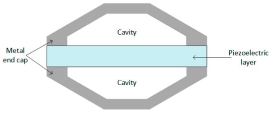 Piezoelectric materials transducers are available in the following configurations []: Cantilever beam (Figure 3), circular diaphragm (Figure 4), cymbal type (Figure 5), and stacked type (Figure 6).