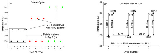 Notation for the three EIS measurements conducted in thermal cyclic method.