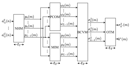 Therefore, the optimal threshold of the m-th input image is determined by the proposed architecture of a fully parallel design. A new value of is computed for every m-th instant.