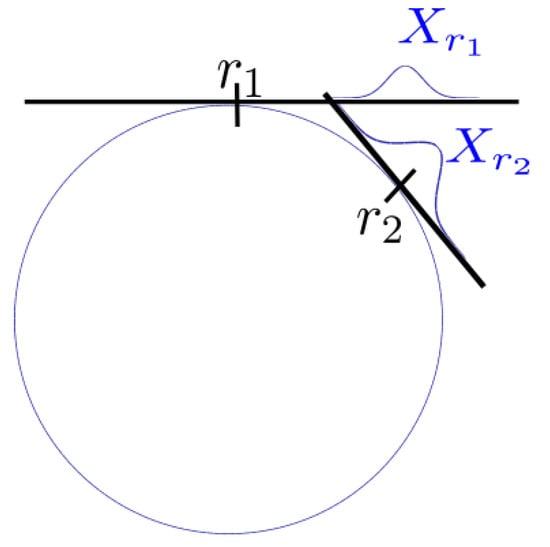 The Gaussian distribution X approximated in two tangent spaces on a unit circle manifold.