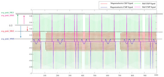 The value of is set to 0.2 for wave peak detection. If is equal to 0, is assigned to 0. When is greater than 0.5, it is judged to be a Hall signal. Otherwise, it is a magnetoelectric signal.