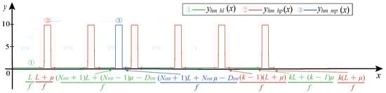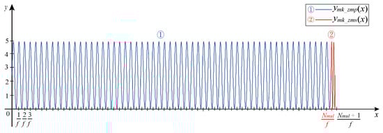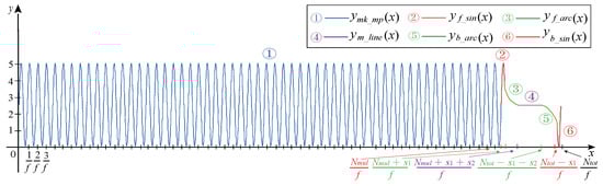 Stage 3: Sinusoidal marked pulse modeling. One of the sinusoidal waveforms is the marked pulse waveform, and the interval length between the other sinusoidal waveforms is the same. The sinusoidal marked pulse waveform is generated according to Equation (