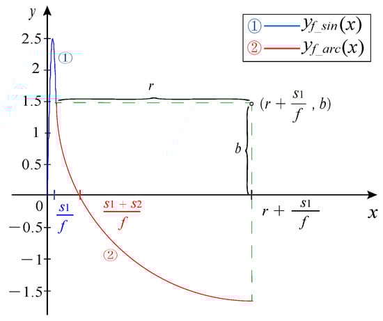 Figure 10, circle 1 in red represents the arc portion, and circle 2 in blue represents the sinusoidal portion.