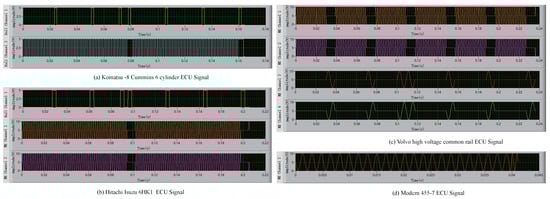 The model can not only be applied to diesel vehicles but can also be extended to gasoline vehicles by adjusting the parameters. For part of the automotive camshaft signal, additional parameters of the proportional relationship between different protruding pulses are needed. For other excitation signals of ECUs, such as oxygen sensor signals, we need to add some additional uniform white noise signals to simulate actual sensor signals while adjusting characteristic parameters. Researchers in related fields can draw on the ideas of this model to develop corresponding simulation signals. First, the intrinsic characteristic parameters of the signals are extracted and abstracted, and then appropriate mathematical functions are used to piecemeal fit local signals. The accuracy of the simulation signal can be significantly improved by using this model.