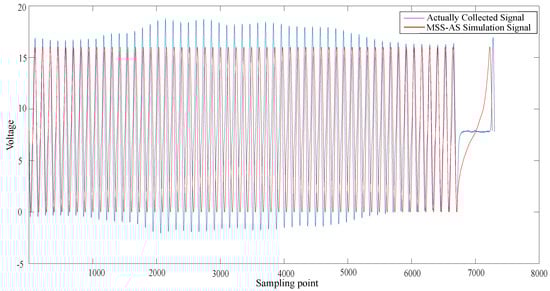 The ECU excitation signal segment model with the above characteristic parameter configuration was realized by programming the previously mentioned computer software. The magnetoelectric CKP signal was taken as an example to generate the signal of the corresponding parameter configuration. In terms of the hardware circuit simulation, the HBs-EED method was selected to compare with the real vehicle signal. In relation to the virtual instrument simulation, the MSS-AS method was chosen to compare with the actual collected signal.