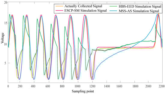 Figure 21, the simulated signal of our proposed ESCP-SM method is most similar to the actually collected signal. The signal voltage simulated by the HBS-EED method is not stable. The signal simulated by the MMS-AS method is relatively steep in the missing tooth waveform, and can not be very close to the actual signal.