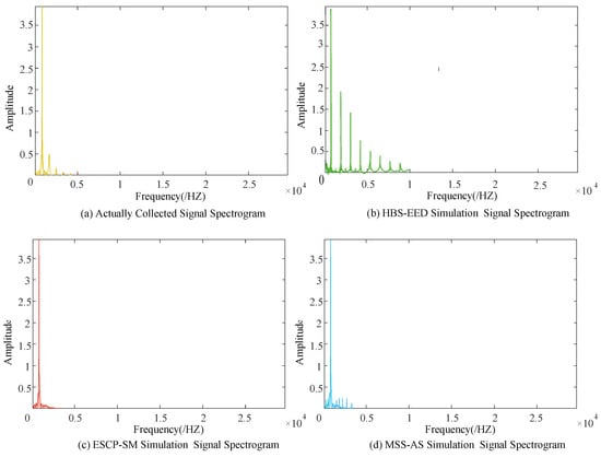 37]. Observation of spectrum analysis shows that the software simulation signal’s effective information is not lost, while the hardware simulation signal adds a redundant noise signal. The spectrum analysis diagram is shown in
