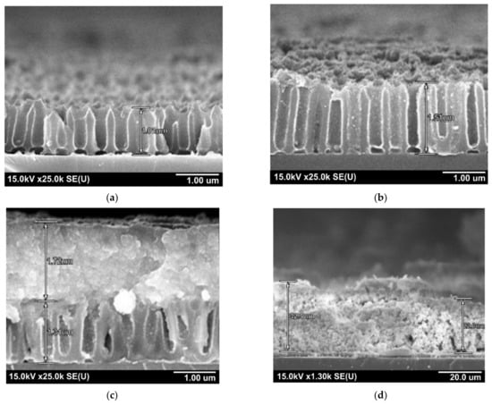 - Gorokh, G.; Mozalev, A.; Solovei, D.; Khatko, V.; Llobet, E.; Correig, X. Anodic formation of low-aspect-ratio porous alumina films for metal-oxide sensor application. Electrochim. Acta 2006, 52, 1771–1780. [Google Scholar] [CrossRef]